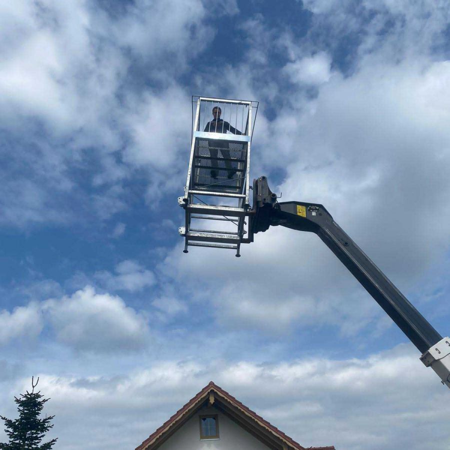 Der von AMA in Bayern entwickelte und hergestellte Arbeitskorb mit 1500 mm Erhöhung und einer Traglast von 250 kg ist die optimale, sichere Lösung für Arbeiten aller Art in großer Höhe. Sowohl in der Landwirtschaft, Forstwirtschaft als auch in der Bauwirtschaft.