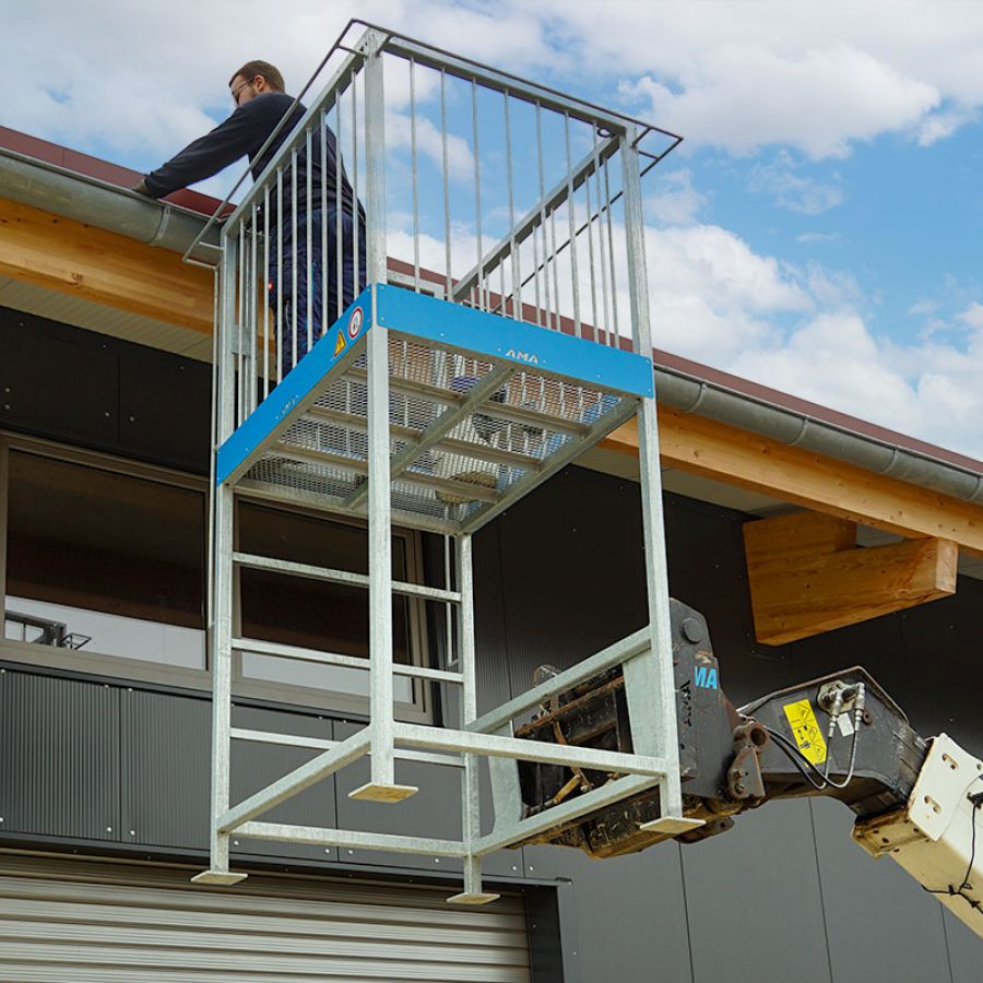 Dank seiner durchdachten Konstruktion und vielseitigen Einsatzmöglichkeiten wird der Arbeitskorb mit Erhöhung von AMA schnell zum unverzichtbaren Hilfsmittel auf jedem Betrieb. Reparaturen und Wartungen an Silos, Maschinen oder Gebäuden, Pflege von Bäumen, Installation von Seilen oder Kamerasystemen, Arbeiten an Fassaden, Dächern oder Gerüsten sind nur einige der vielen Einsatzmöglichkeiten.