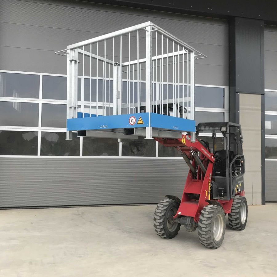 Der AMA-Arbeitskorb ist für alle gängigen Aufnahmen konzipiert, sodass er mit verschiedenen Trägerfahrzeugen wie Traktoren, Staplern oder Baumaschinen wie Lader verwendet werden kann. Je nach Ausführung des Arbeitskorbs kann eine zweite zusätzliche Aufnahme für Staplergabel oder Dreipunktaufnahme Kat. 2 gewählt werden. Für zusätzliche Sicherheit ist ein optionales Staplerschutzgitter erhältlich. Der Arbeitskorb von AMA ist im Standard 1050 mm breit und in Längen zwischen 1300 mm bis 2000 mm erhältlich und wird so unterschiedlichsten Anforderungen gerecht. Eine seitliche Tür ermöglicht einen bequemen und sicheren Einstieg, was die Arbeit besonders komfortabel macht.