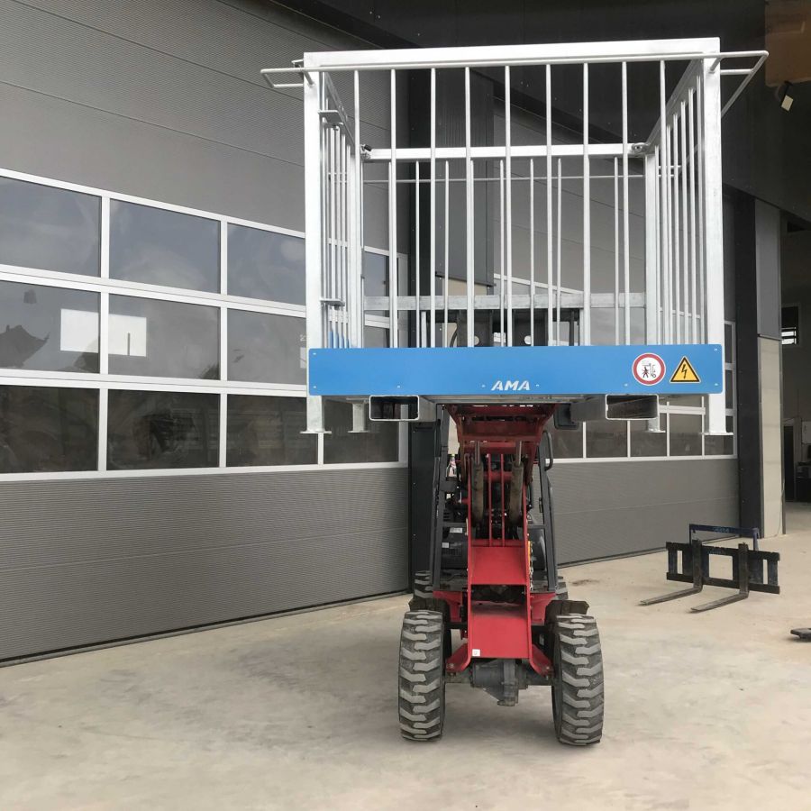 Der AMA-Arbeitskorb ist für alle gängigen Aufnahmen konzipiert, sodass er mit verschiedenen Trägerfahrzeugen wie Traktoren, Staplern oder Baumaschinen wie Lader verwendet werden kann. Je nach Ausführung des Arbeitskorbs kann eine zweite zusätzliche Aufnahme für Staplergabel oder Dreipunktaufnahme Kat. 2 gewählt werden. Für zusätzliche Sicherheit ist ein optionales Staplerschutzgitter erhältlich. Der Arbeitskorb von AMA ist im Standard 1050 mm breit und in Längen zwischen 1300 mm bis 2000 mm erhältlich und wird so unterschiedlichsten Anforderungen gerecht. Eine seitliche Tür ermöglicht einen bequemen und sicheren Einstieg, was die Arbeit besonders komfortabel macht.