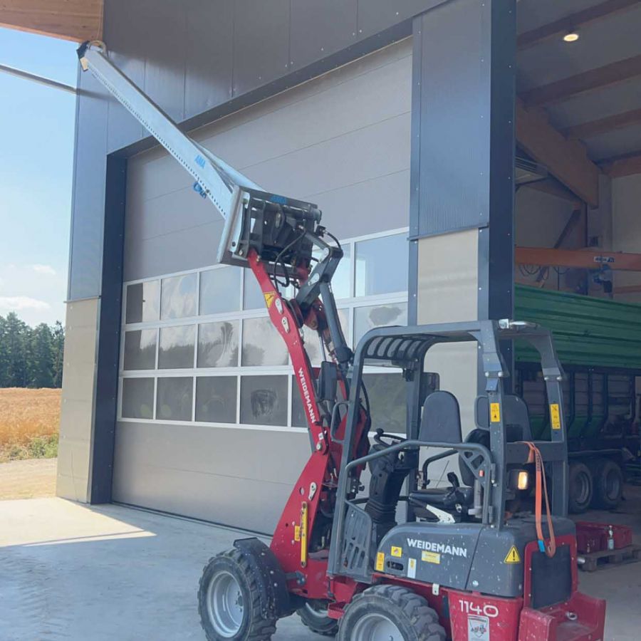 Entwickelt und hergestellt in Bayern unterstützen die robusten Lasthaken von AMA anspruchsvolle Arbeiten in der Landwirtschaft und der Bauwirtschaft. Mit einer wählbaren Länge des starren Lasthakens zwischen zwei und vier Metern ist er für hohe Lasten bis zu 2500 kg ausgelegt. Dieser lange Lasthaken ermöglicht es den Transportfahrzeugen, Ladearbeiten in größeren Höhen und mit großen, sperrigen Gütern sicher durchzuführen.