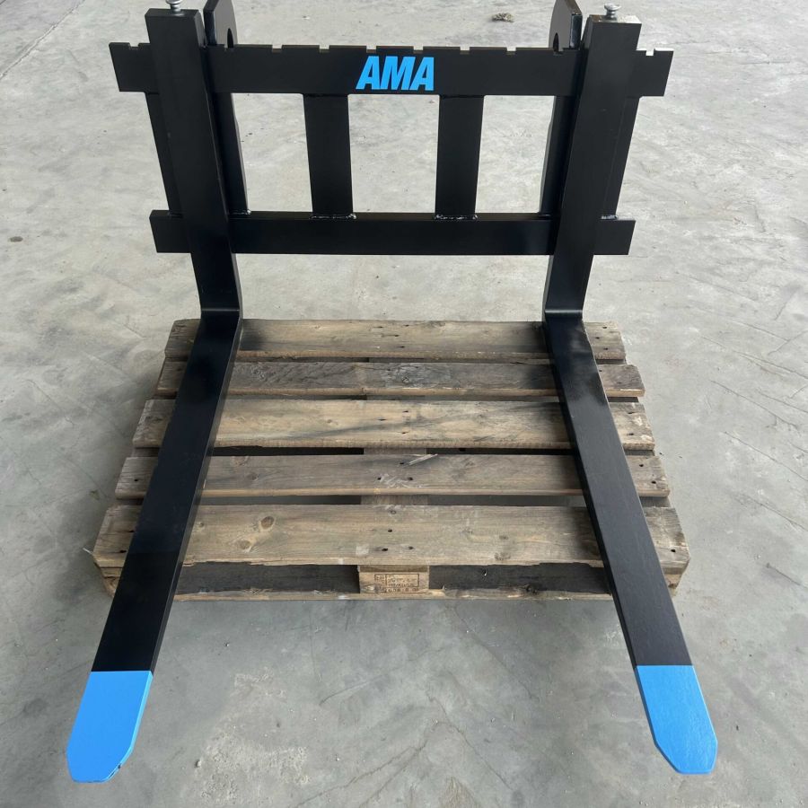 Schnell und einfach sind die robusten Palettengabeln von AMA aufgrund der durchdachten Konstruktion mechanisch auf den gewünschten Gabelabstand einstellbar. Unterschiedlich breite Lasten werden sicher aufgenommen und transportiert. AMA fertigt Palettengabeln individuell auf Kundenwunsch in der benötigten Zinkenlänge und der Traglast. Im Standard mit der Euroaufnahme für den Frontlader ausgestattet, ist die AMA-Palettengabel natürlich auch für alle anderen Aufnahmen wie Dreipunkt oder für den Lader erhältlich.