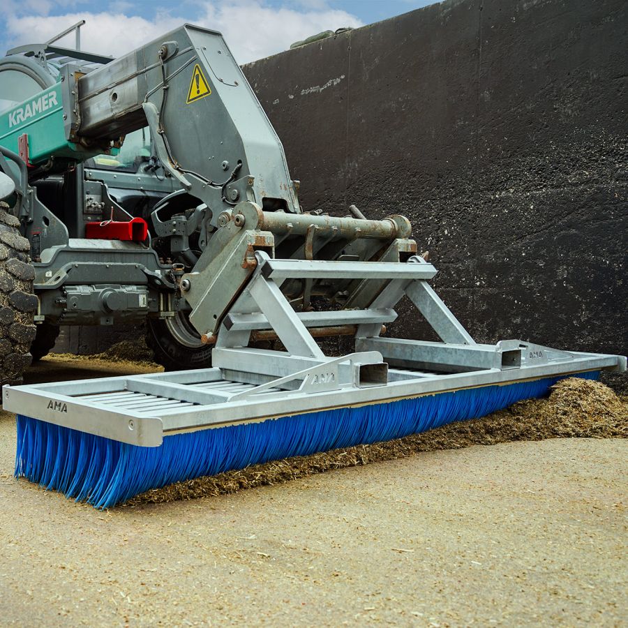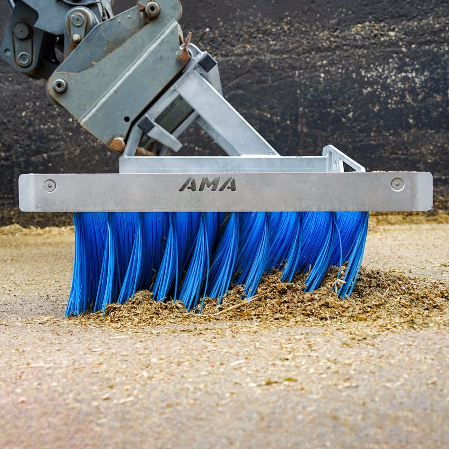 Konstruiert ohne Hydraulik ist der Kehrbesen von AMA in unter einer Minute einsatzbereit und reinigt intensiv von Dreck, Getreide, Schnee oder andere Materialien. Einfach an den Schlepper, Lader oder Stapler montieren und loskehren – schneller geht es nicht! Robuste Kunststoffborsten sorgen für eine außergewöhnlich lange Lebensdauer, selbst bei intensiver Nutzung. Dank der wartungsfreien Konstruktion ist kein zusätzlicher Aufwand erforderlich.