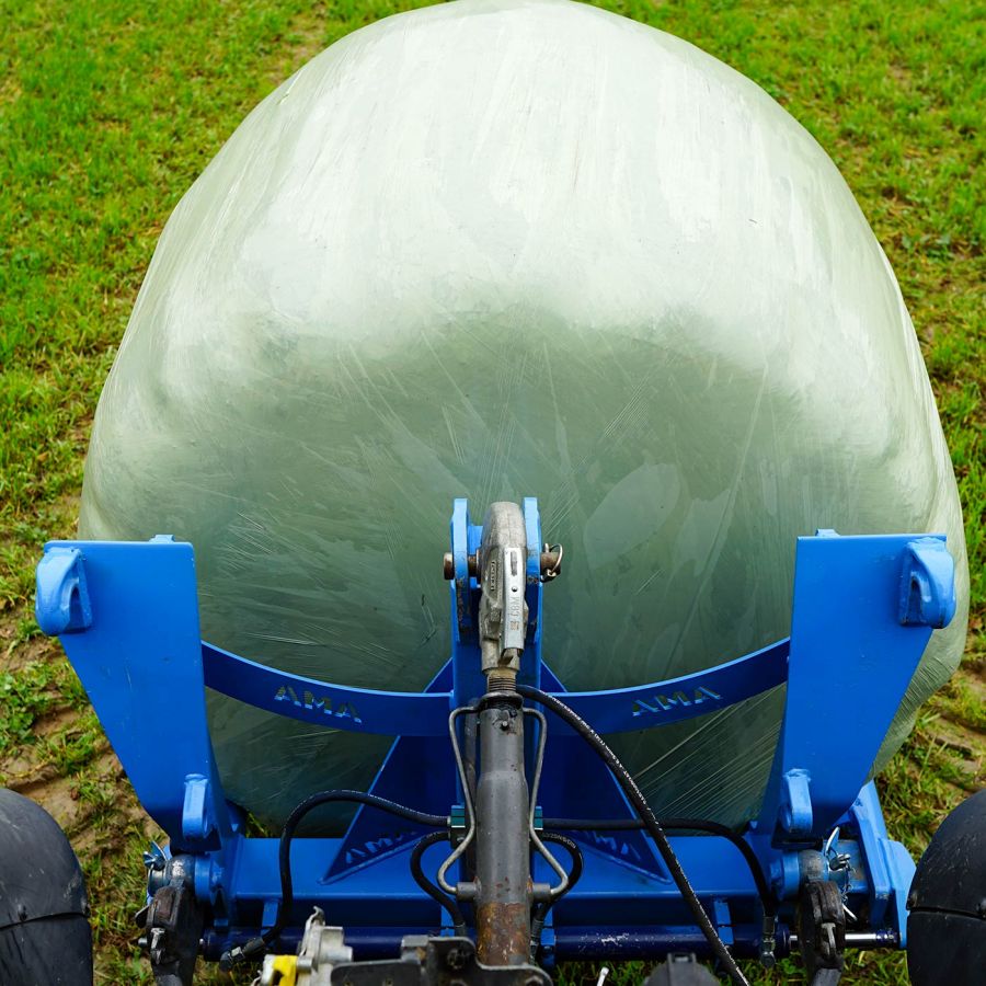 Die von AMA entwickelten und hergestellten hydraulischen Silageballengabeln mit extrem belastbaren Gabelrohren transportieren die Silageballen, auch Siloballen, Wickelballen oder Rundballen genannt äußerst schonend.